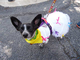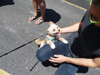 Penny did her very best as she strutted down the red carpet. She even stopped to sniff the judges. We stood by the front doors, watching and waiting. Suddenly, a little fluff ball of a dog came running over to Penny.